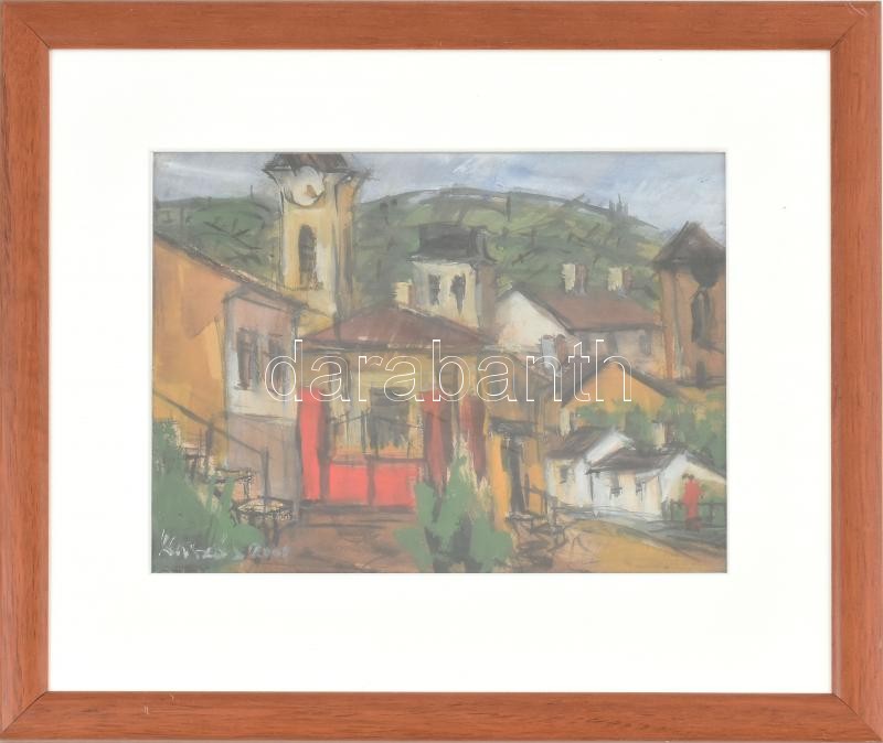 Kaszás István Viktor (1928-2015): Tokaji utca. Vegyes technika, papír, üvegezett keretben, jelzett, 20x25cm