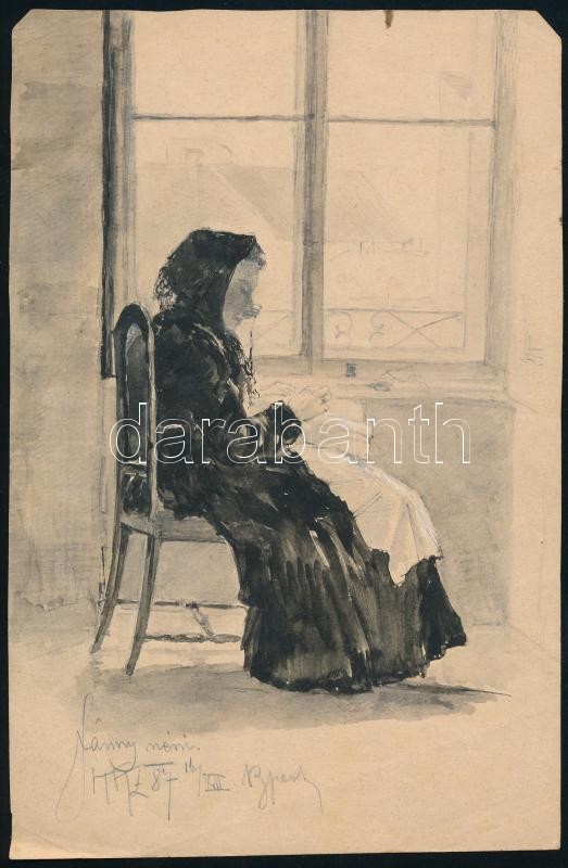 Kézdi Kovács László (1864-1942): Fánny néni, Budapest, 1887. Tus, ceruza, papír. Jelezve balra lent. 21×14 cm.