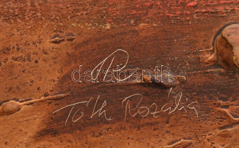 Tóth Rozália (1946-2015): Tanya. Olaj, vegyes technika, farost, jelzett, 40x80cm. Dekoratív fakeretben.