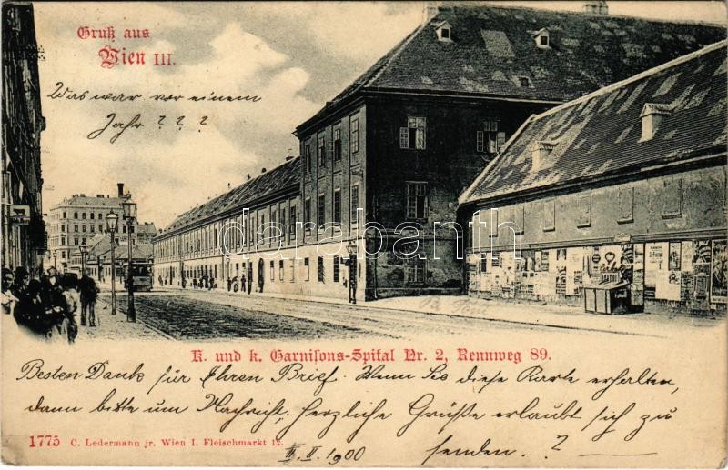 1900 Wien, Vienna, Bécs; K.u.K. Garnisons-Spital Nr. 2. Rennweg 89. / ...