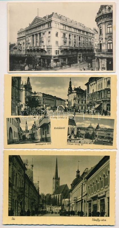 6 db RÉGI erdélyi város képeslap vegyes minőségben: Kolozsvár és Dés / 6 pre-1945 Transylvanian town-view postcards in mixed quality: Cluj and Dej