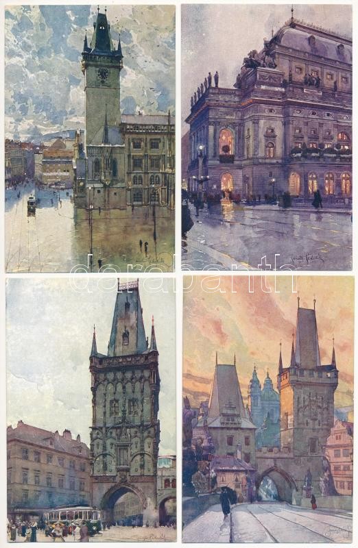 PRÁGA - 10 db régi használatlan képeslap Jar. Setelík szignójával / PR...