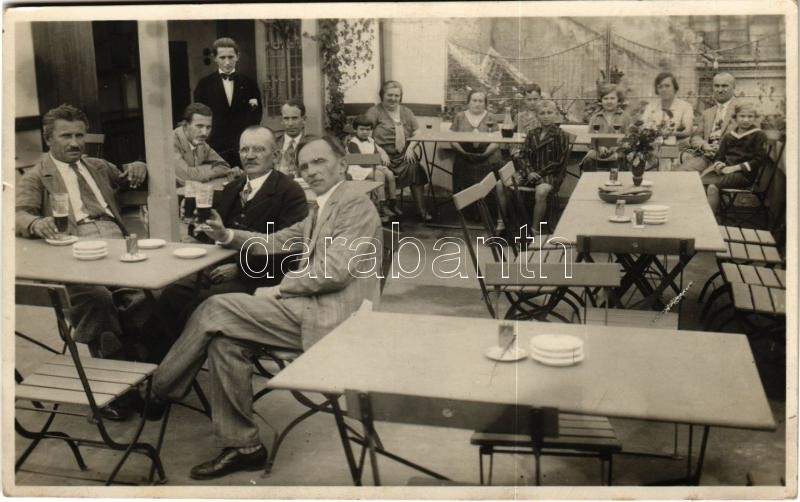 1931 Nagyszombat, Tyrnau, Trnava; italozó társaság, pincér / inn with waiter and drinking guests. photo (apró szakadás / tiny tear)