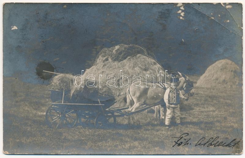 ~1906 Tátralomnic, Tatranská Lomnica (Magas-Tátra, Vysoké Tatry); A kis gazda csacsival / child with donkey. photo (EB)