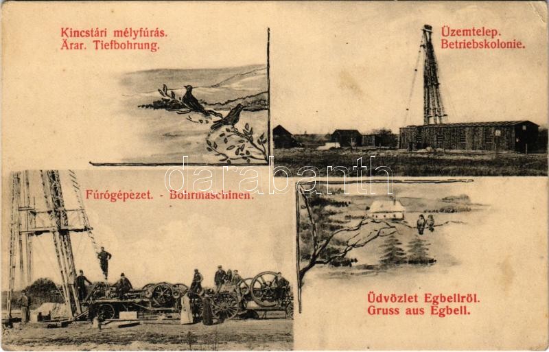 Egbell, Gbely; Kincstári mélyfúrás, Üzemtelep, Fúrógépezet, fúrótorony, olajbánya / Ärar. Tiefbohrung, Betriebskolonie, Bohrmaschinen / oil rig, oil well, drilling machine, plant colony (EK)