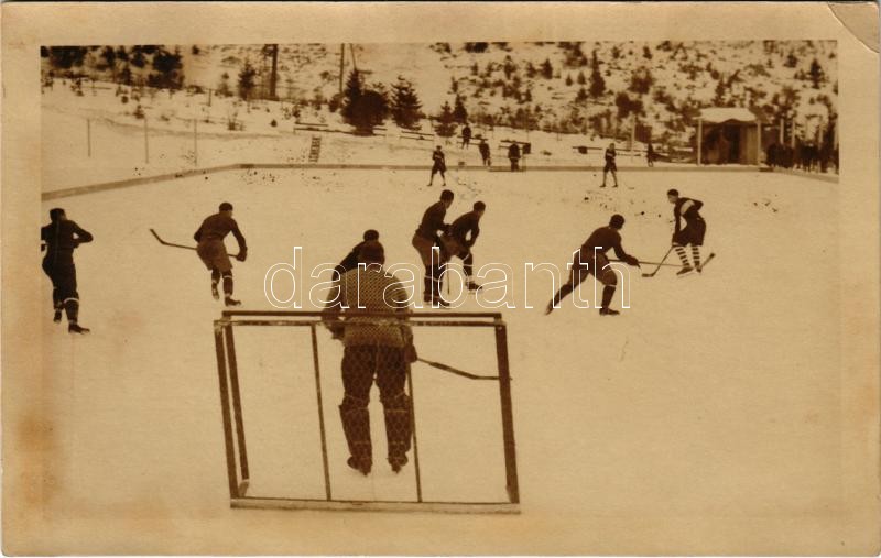 Ótátrafüred, Ó-Tátrafüred, Alt-Schmecks, Stary Smokovec (Tátra, Magas-Tátra, Vysoké Tatry); jégkorongozók, téli sport / ice hockey, winter sport. Dietz photo (ragasztónyom / glue marks)