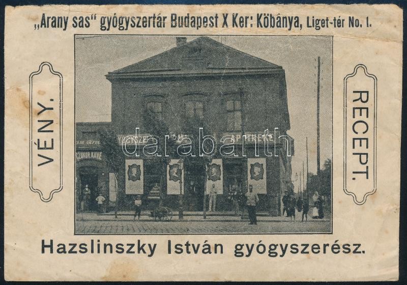 Kőbánya Hazslinszky István gyógyszertára receptboríték hiányos