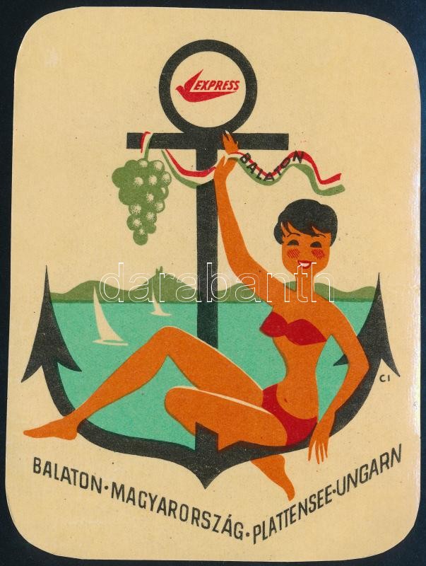 cca 1960 Balatoni hangulatos szocreál bőröndcímke, szép állapotban