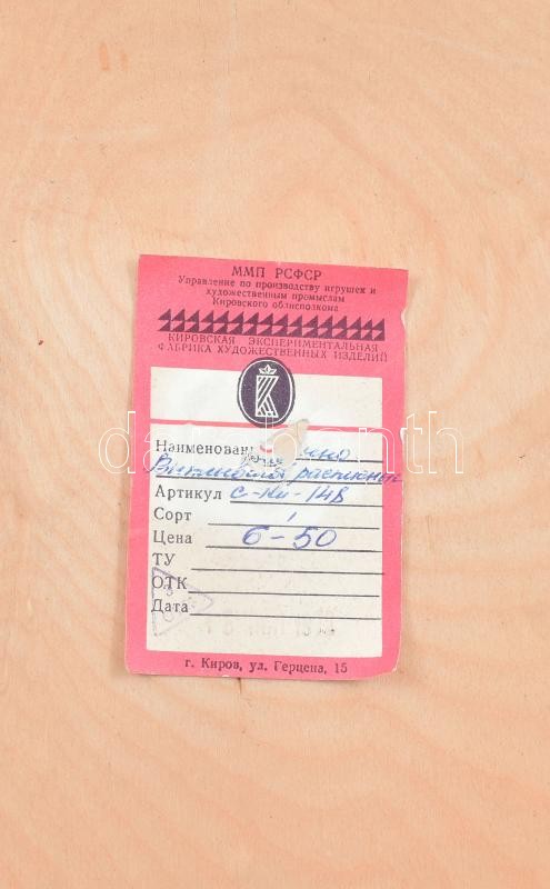Szovjet, fali, faragott fa és festett falikép. 35x35cm