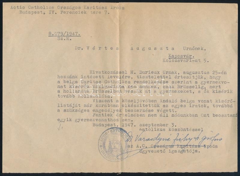 https://www.darabanth.com/en/426-Online-auction/426.0/Art-and-other-collectibles/Historical-documents-manuscripts~500021/1947-Varasdy-Sandorne-Zichy-Henriette-grofno-sk-alairasa-Actio-Catholica-levelen~II2715827