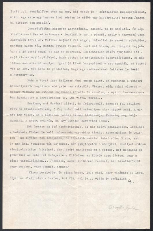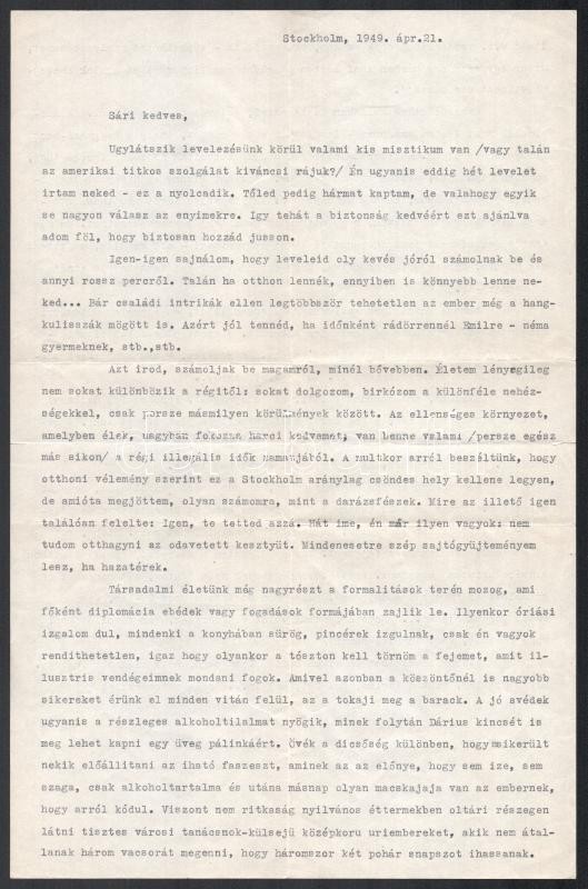 1949 Schöpflin Gyula (1910-2004) író, diplomata levele Teleki Sári (1920-1995) részére borítékkal