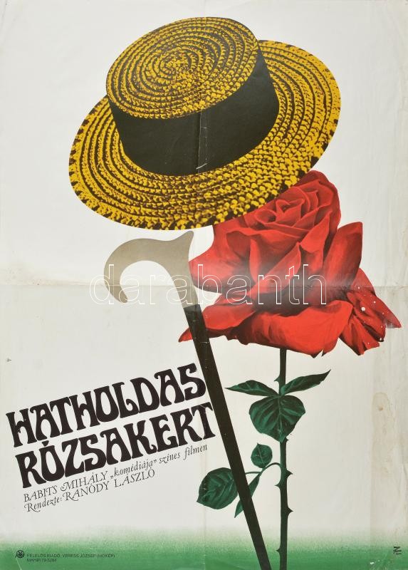 1970 Hatholdas rózsakert magyar film, MOKÉP plakát, hajtott, ázásnyomo...
