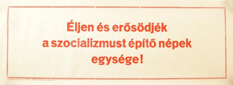 cca 1977 Éljen és erősödjön... - szocialista lelkesítő plakát, 70×25 cm
