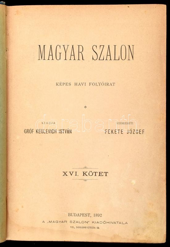 1892 Magyar Szalon. XVI. köt. Szerk.: Fekete József. Kiadja gróf Kegle... https://www.darabanth.com/en/426-Online-auction/426.0/Art-and-other-collectibles/Printed-Materials~1000004/1892-Magyar-Szalon-XVI-kot-Szerk-Fekete-Jozsef-Kiadja-grof-Keglevich-Istvan-Bp-1892-~II2717345