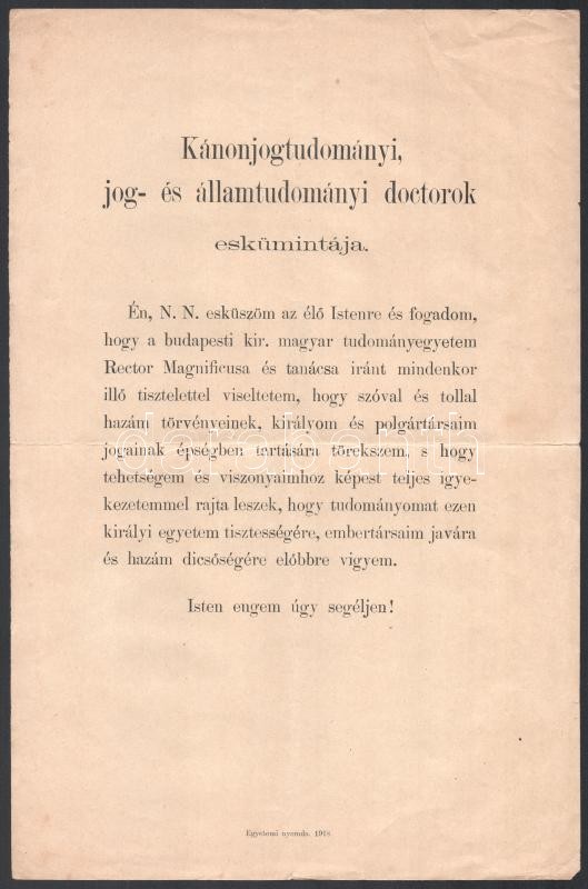 https://www.darabanth.com/en/426-Online-auction/426.0/Art-and-other-collectibles/Printed-Materials~1000004/1918-Kanonjogtudomanyi-jog-es-allamtudomanyi-doktorok-eskumintaja~II2723382