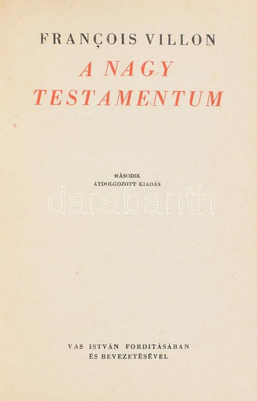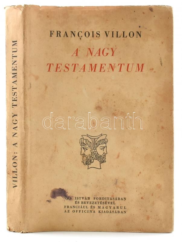 Villon, Francois: A nagy testamentum. / Le grand testament. Ford. és a... https://www.darabanth.com/en/426-Online-auction/426.0/Books/Books-Other-rarities~1000024/Villon-Francois-A-nagy-testamentum-Le-grand-testament-Ford-es-a-bevezetest-irta-Vas-IstvC3~II2696008