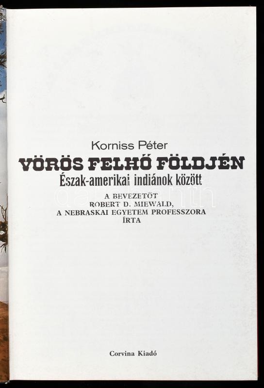 Korniss Péter: Vörös felhő földjén. Észak-amerikai indiánok között. Robert D. Miewald bevezetőjével. Ford.: Barabás András. Bp., 1982, Corvina. Gazdag képanyaggal illusztrálva. Kiadói kartonált papírkötés, kissé sérült borítóval.