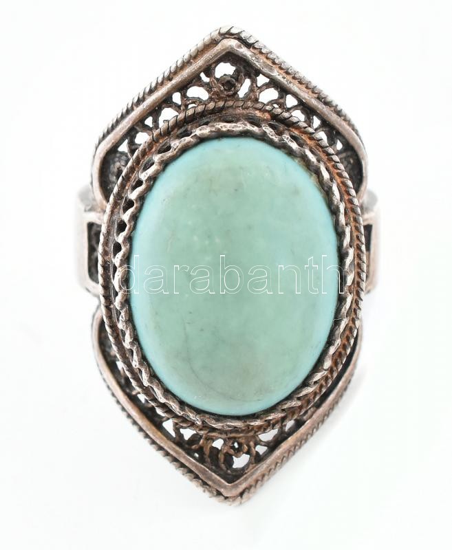 Ezüst(Ag) türkizszínű kővel díszített gyűrű, jelzett, méret: 59, bruttó: 11,7 g