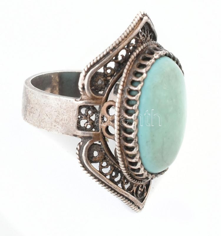 Ezüst(Ag) türkizszínű kővel díszített gyűrű, jelzett, méret: 59, brutt...