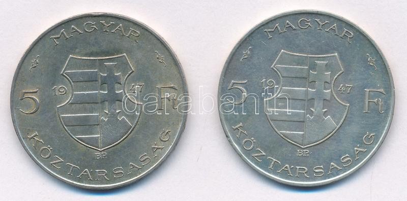 1947. 5Ft Ag "Kossuth" (2x) T:1- patina, ph
