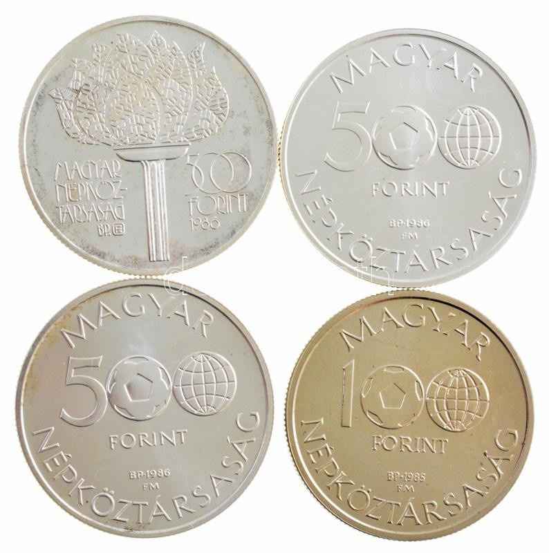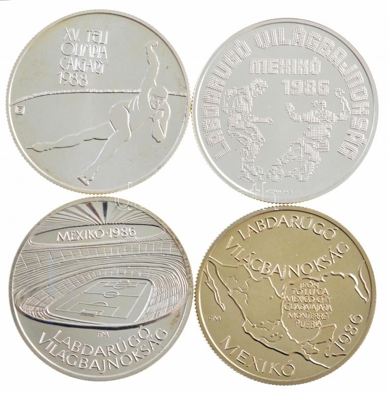 500Ft Ag "Labdarúgó Világbajnokság - Mexikó 1986 - Stadion" + 500Ft Ag "XV. Téli Olimpia Calgary 1988" kapszulában + 1985. 100Ft Cu-Ni-Zn "Labdarúgó Világbajnokság - Térkép" mind kapszulában T:BU