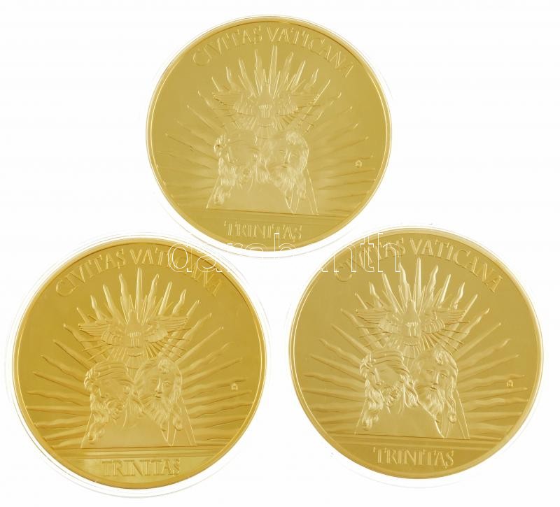 DN "NON NOBIS DOMINE, NON NOBIS, SED NOMINI TUO DA GLORIAM" aranyozott, részben multicolor festett emlékérem (100mm) + "OMNIPOTENTIA OMNIBENEVOLENTIA OMNIS SCIENTIA OMNIPRAESENTIA INFINATUS" aranyozott, részben multicolor festett emlékérem (100mm) + "IN NOMINE PATRIS ET FILI, ET SPIRITUS SANCTI" aranyozott, részben multicolor festett emlékérem (100mm) T:PP