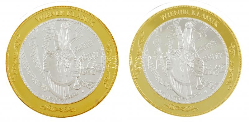 DN "Wolfgang Amadeus Mozar / Wiener Klassik" aranyozott és ezüstözött fém emlékérem, kristályberakással (70mm) + DN "Franz Joseph Haydn" aranyozott és ezüstözött fém emlékérem, kristályberakással (70mm) T:PP