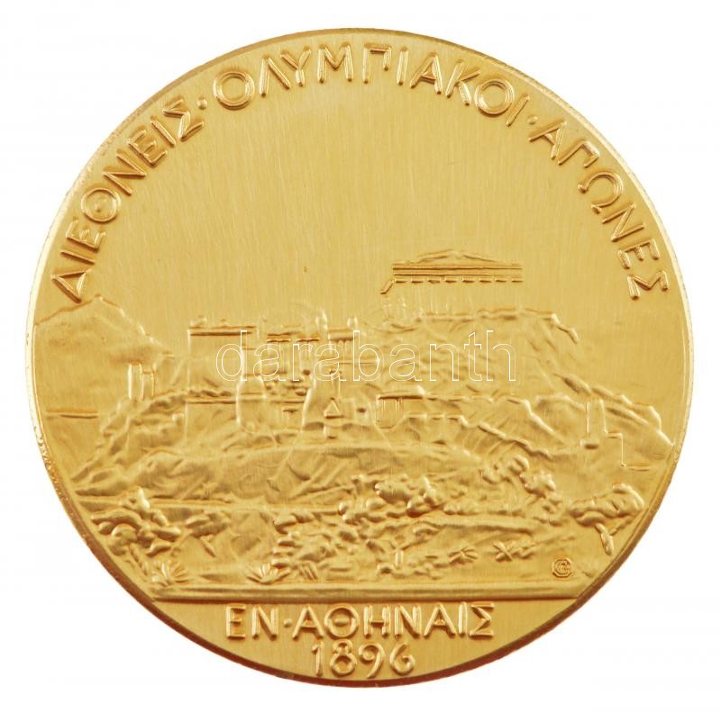 Görögország DN "1896 Olimpia" kétoldalas, aranyozott fém modern emlékérem (50mm) T:1 Greece ND "1896 Olympics" two-sided, gilt metal modern medallion (50mm) C:UNC