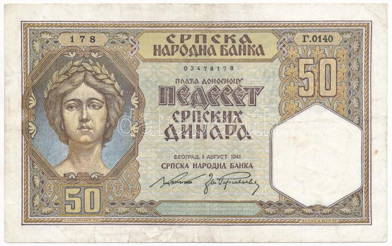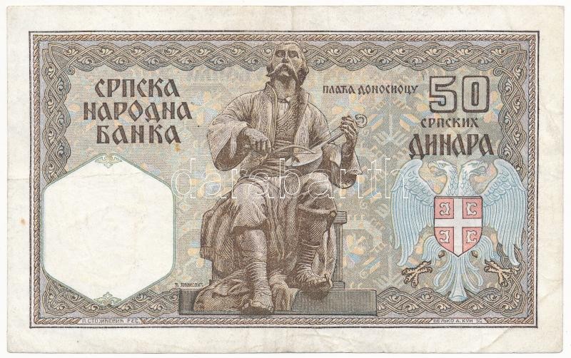 Szerbia / Német megszállás 1941. 50D T:III Serbia / German occupation 1941. 50 Dinara C:F