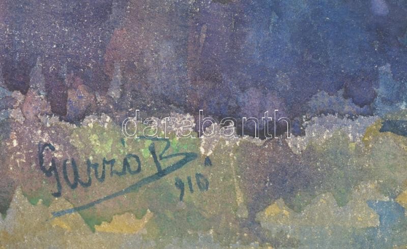 Garzó Bertalan (1882-1959): Színes táj, 1910. Akvarell, papír, jelzett, kartonra kasírozva, hátoldalán feliratozott, 32×39 cm