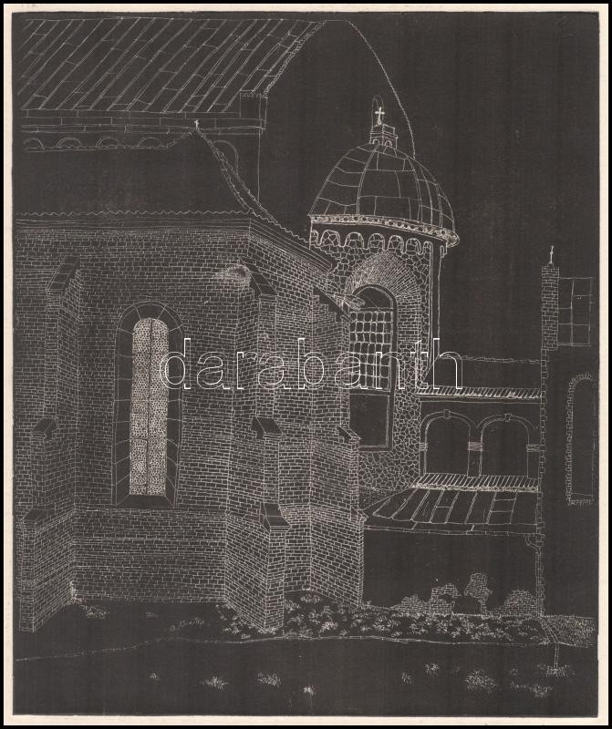 Szunyoghy András (1946-): Templomrom Monotípia papír. Jelzett, 24x21 c...
