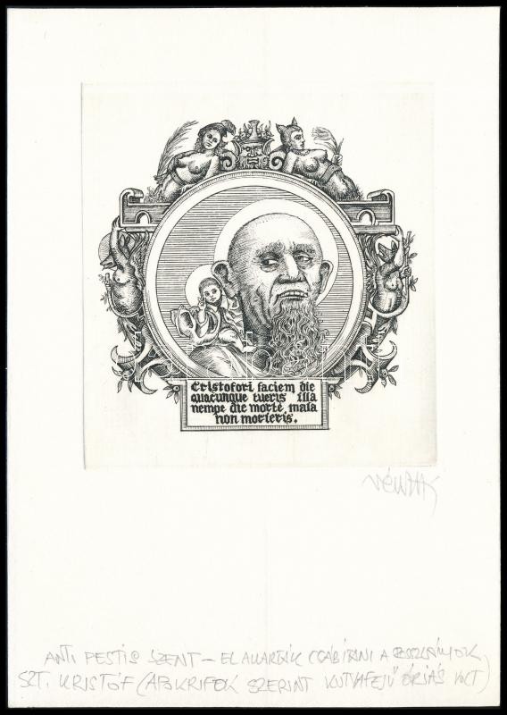 Vén Zoltán (1941-): "Anti pestis szent". Rézmetszet, papír, ...