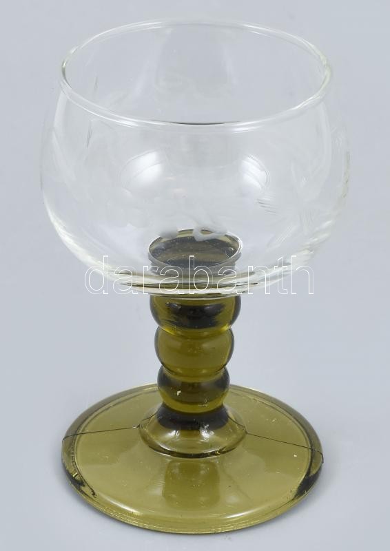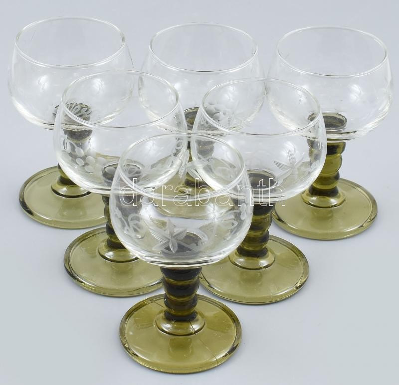 6 db talpas borospohár, csiszolt, metszett szőlős mintával. Formába ön...