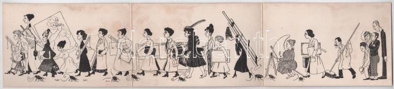 3-részes kihajtható művészlap nőkkel / 3-tiled folding art postcard with women (fl)