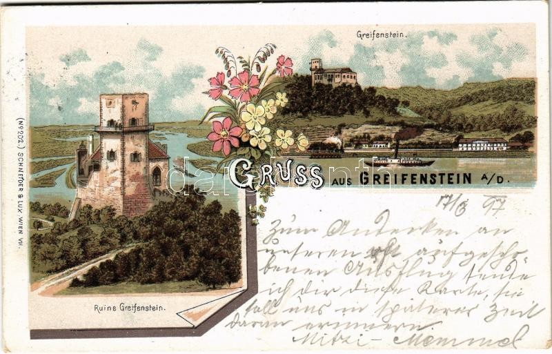 1897 (Vorläufer!) Sankt Andrä-Wördern, Gruss aus Greifenstein. Ruine Greifenstein. Schneider & Lux Art Nouveau, floral, litho (EK)