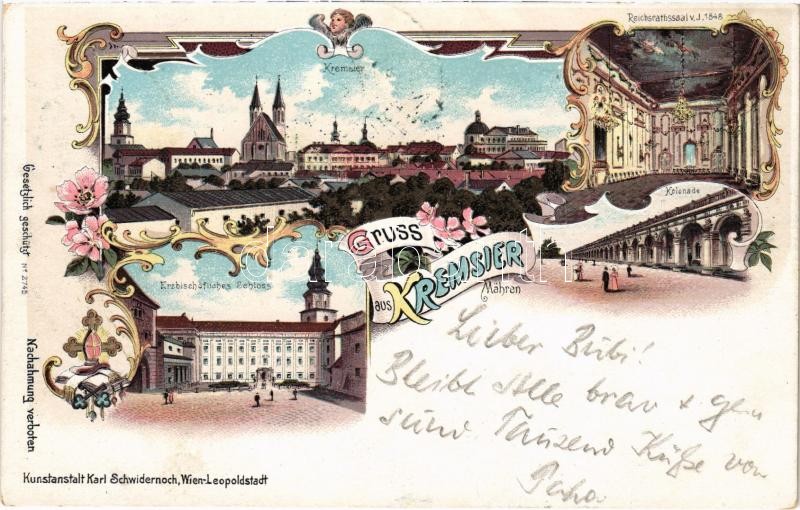 1898 (Vorläufer) Kromeríz, Kremsier; Erzbischöfliches Schloss, Reichsratssaal v. J. 1848, Kolonade. Karl Schwidernoch Art Nouveau, floral, litho (EK)