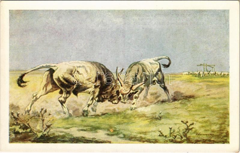 Párbaj a pusztán. Magyar folklór művészlap / Hungarian folklore art postcard s: Benyovszky