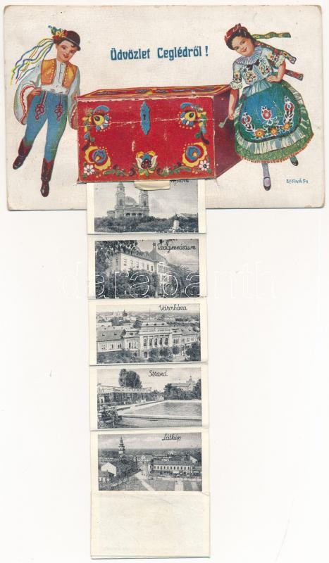 1942 Cegléd, magyar népviseletes leporellolap 10 képpel s: Bernáth (sz...