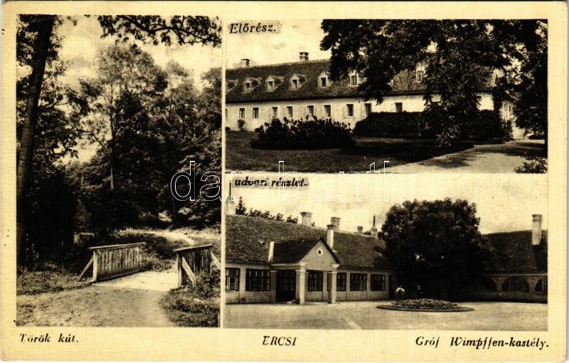1943 Ercsi, Gróf Wimpffen kastély elő és udvari része, Török kút (EK)