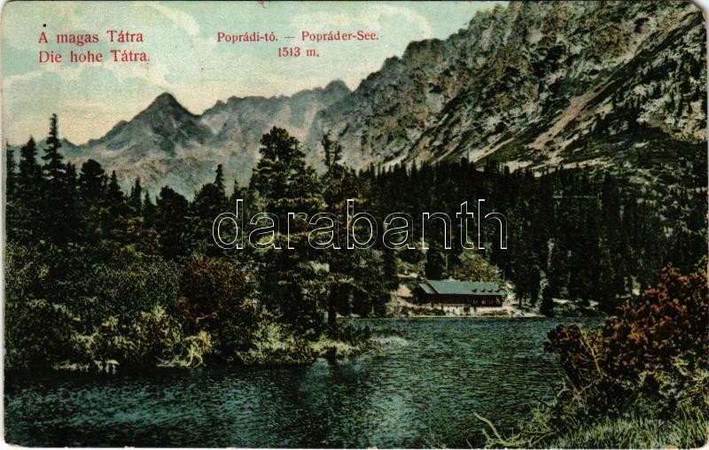 1909 Tátra, Magas-Tátra, Vysoké Tatry; Poprádi-tó. Divald Károly műintézete 1443-1908. / Popradersee / Popradské pleso / lake (EM)