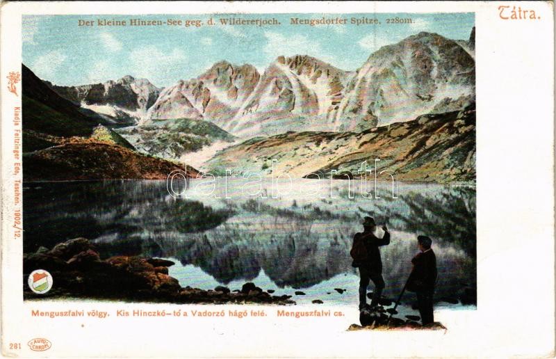 Description: 1910 Tátra, Magas-Tátra, Vysoké Tatry; Menguszfalvi-völgy. Kis-Hincó-tó a Vadorzó hágó felé, Menguszfalvi-csúcs. Kiadja Feitzinger Ede 1902/12. 281. Auto-Chrom / Der kleine Hinzen-See geg. d. Wildererjoch. Mengsdorfer Spitze / Hincovo pleso, Mengusovská dolina (fa)