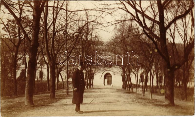 Komárom, Komárnó; katonatiszt a tiszti kaszinó előtt / K.u.k. military officer in front of the casino. photo (fl)