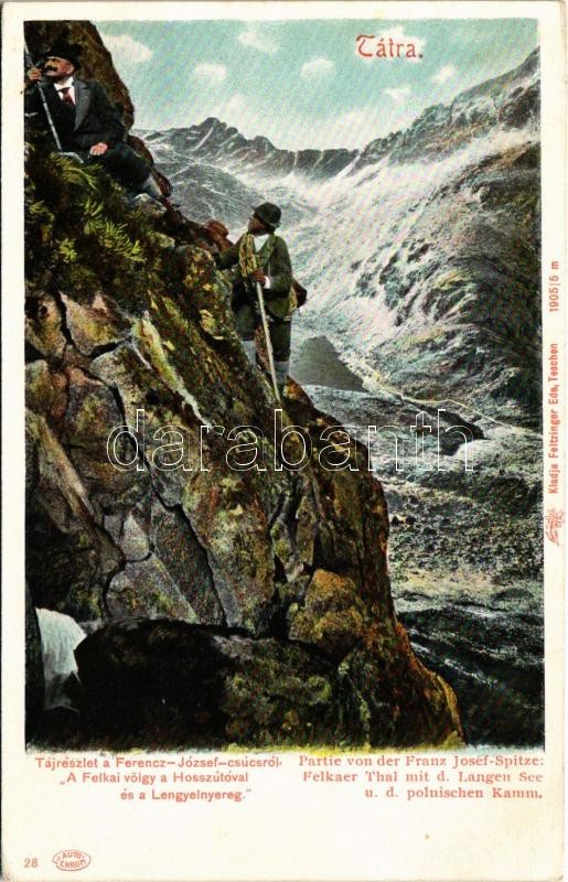 Tátra, Vysoké Tatry; Tájrészlet a Ferenc József csúcsról. A Felkai völ... https://www.darabanth.com/en/426-Online-auction/426.0/Postcards/Slovakia~1500007/Tatra-Vysoke-Tatry-Tajreszlet-a-Ferenc-Jozsef-csucsrol-A-Felkai-volgy-Hosszu-to-es-a-~II2721579