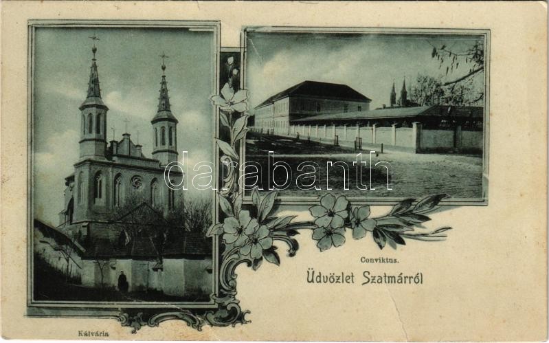 Description: 1908 Szatmárnémeti, Satu Mare; Kálvária és Konviktus. Reizer János kiadása / calvary and boarding school. Art Nouveau, floral (kis szakadás / small tear)