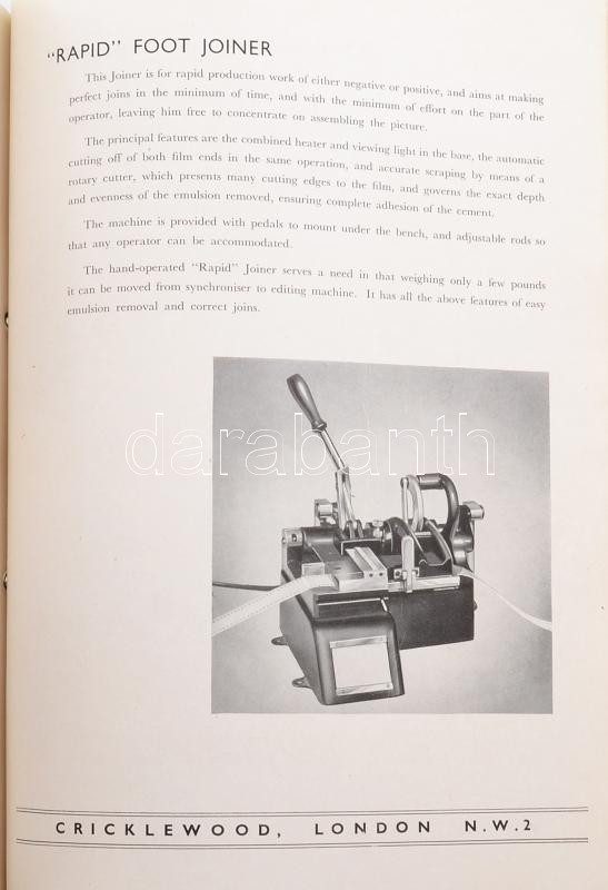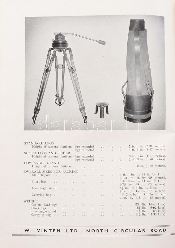 1948 Cinematograph Export Ltd. London, Vinten brit filmes felszereléseket gyártó cég termékeit ismertetÅ‘ katalógus, árjegyzék (Everest II és egyéb tÃpusú stúdió kamerák, mikrofonállványok, tripodok, stb.), fekete-fehér képekkel illusztrált, angol nyelven, eredeti mappában / Cinematograph Export Ltd. London, Vinten British film equipment company illustrated catalogue, price list (Everest II and other studio cameras, microphone booms, tripods, etc.)