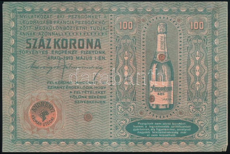 https://www.darabanth.com/en/427-Online-auction/427.0/Art-and-other-collectibles/Advertisement~500023/Andrenyi-pezsgo-100-koronas-bankjegyhez-hasonlito-arjegyzek-szamla-18x12-cm~II2734240