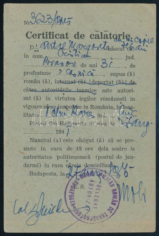 https://www.darabanth.com/en/427-Online-auction/427.0/Art-and-other-collectibles/Documents~500019/1945-Roman-Katonai-Szallitasi-Hivatal-Budapest-utazasi-igazolvany~II2734363