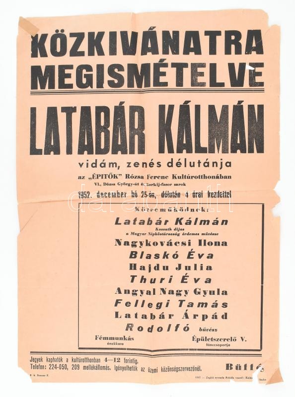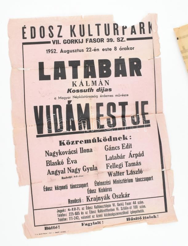 1952-1953 7 db plakát Latabár Kálmán (1902-1970) és mások fellépéséről