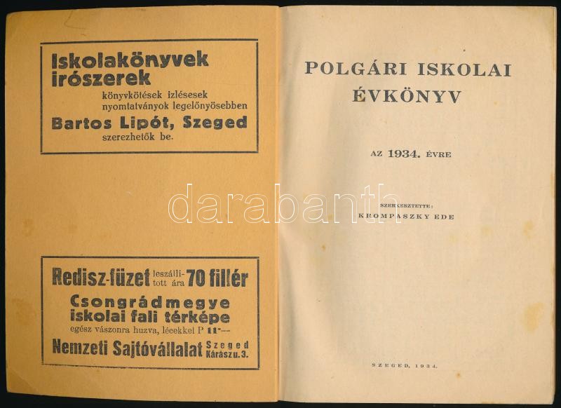 https://www.darabanth.com/en/427-Online-auction/427.0/Art-and-other-collectibles/Printed-Materials~1500003/1934-Polgari-iskolai-evkonyv-az-1934-evre-Szerk-Krompaszky-Ede-Szeged-1934-Delmagyarors~II2733727