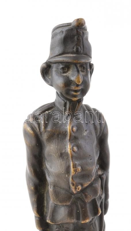 Jelzés nélkül: Bronz I. világháborús katona szobor, mészkő talapzaton. 23 cm Jelzés nélkül